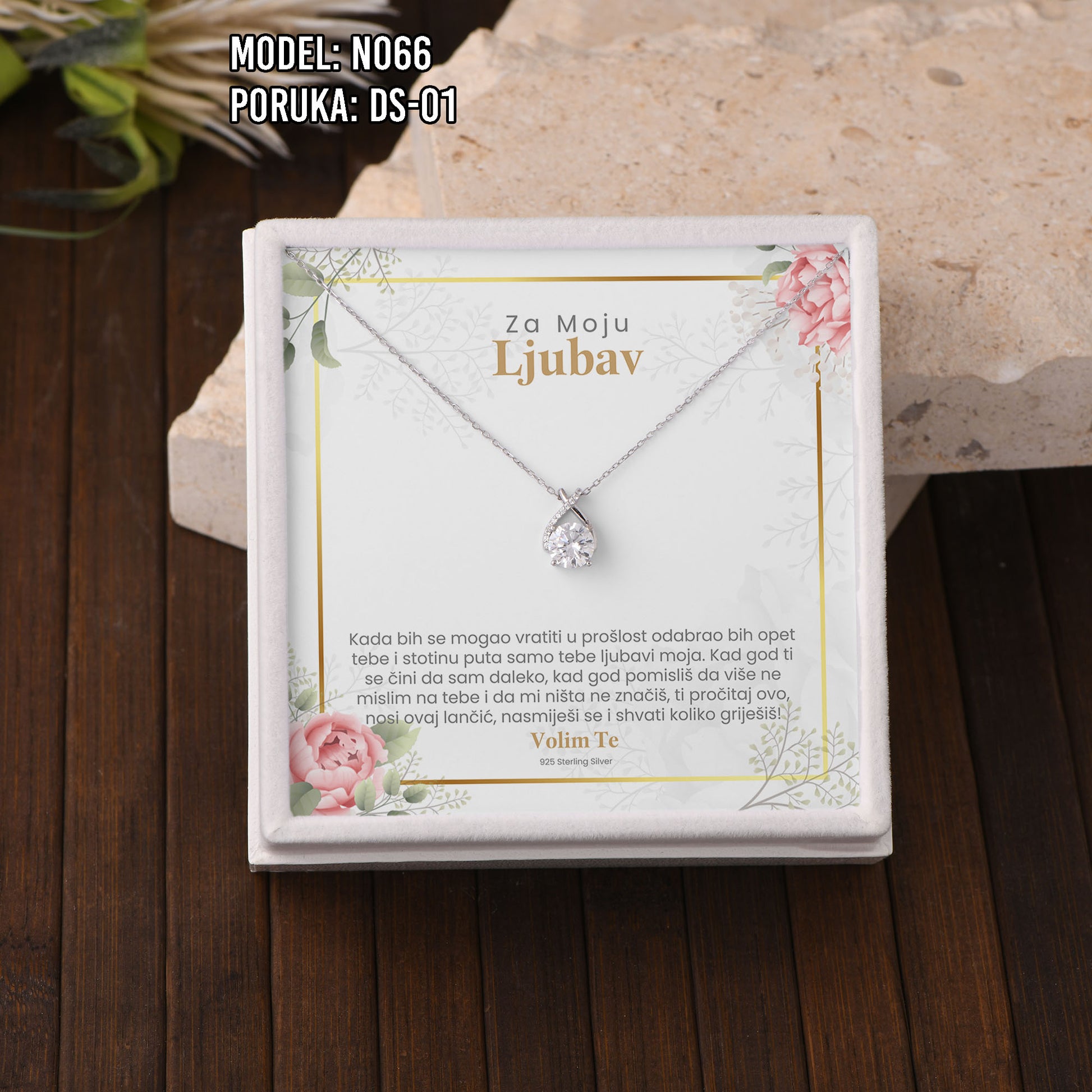 Moissanite ogrlica je poklon koji ostavlja bez riječi. Dolazi u poklon kutiji sa message card porukom (kao na slici) — spremno za 8. mart, rođendan, godišnjicu ili “samo zato”.